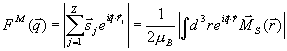 Several authors have paid attention to the build-up of a much more detailed description of the differential cross section, depending on the initial and final polarisation states of both interacting photon and electron (see Franz, 1936, 1938; Fano, 1949; Lipps and Tolhoek, 1954a, b; Tolhoek, 1956; Olsen, 1968; Ewald and Franz, 1976), but this extent of detail is excessive for the scope of this paper. In order to extend the kernel (45) to atoms with many electrons (Platzman and Tzoar, 1970, 1985), we must consider the distribution of the magnetisation in addition to that of the electric charge. Therefore, the matrix kernel becomes more complex than the kernel (44) that was obtained in absence of the magnetic field. This feature makes that the complete matrix kernel is composed of the sum of two matrix terms, one depending on the electric charge distribution, as in equation (44), and another one depending on the magnetisation distribution. For the last distribution it is convenient to define a magnetic form factor which, in analogy to the charge form factor, can be expressed [in agreement with the definition of Collins et al. (1990, 1992)] as the modulus of the spatial Fourier transform of the spin density:
